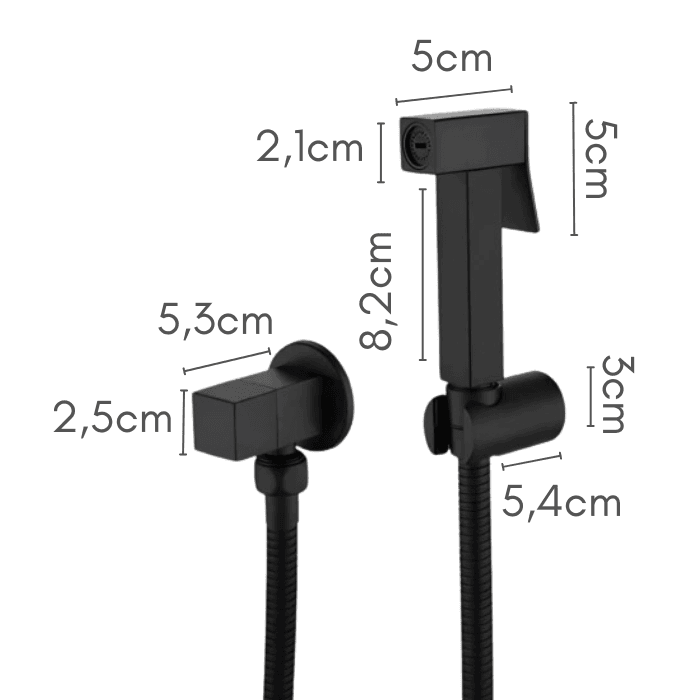 Ducha Higienica Lablanco Quadrada Metal 1/4 volta Preto Matte