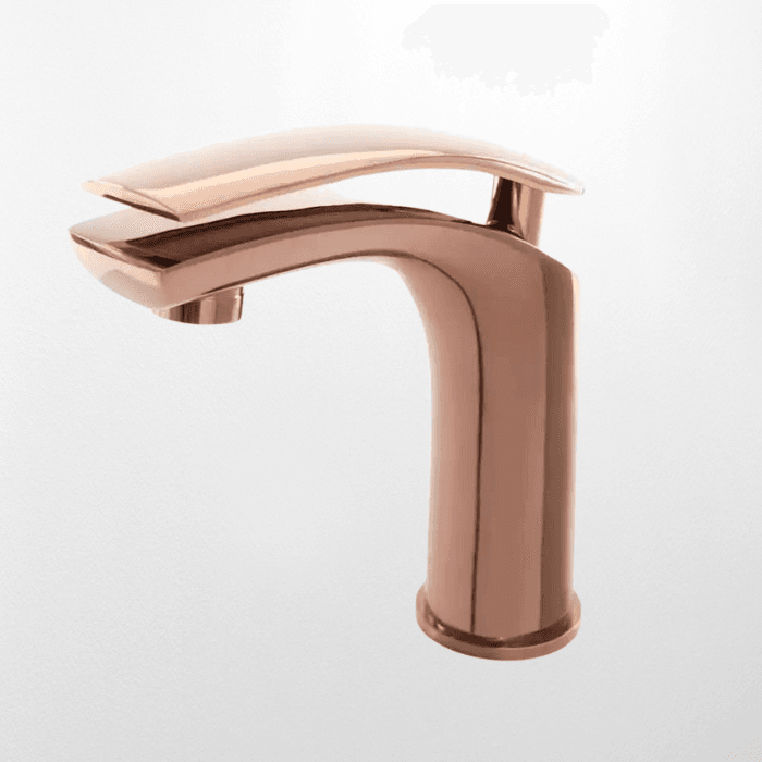 Esse misturador monocomando em metal para para banheiros e lavabos é a solução para quem busca sofisticação com acabamento na cor rose gold.