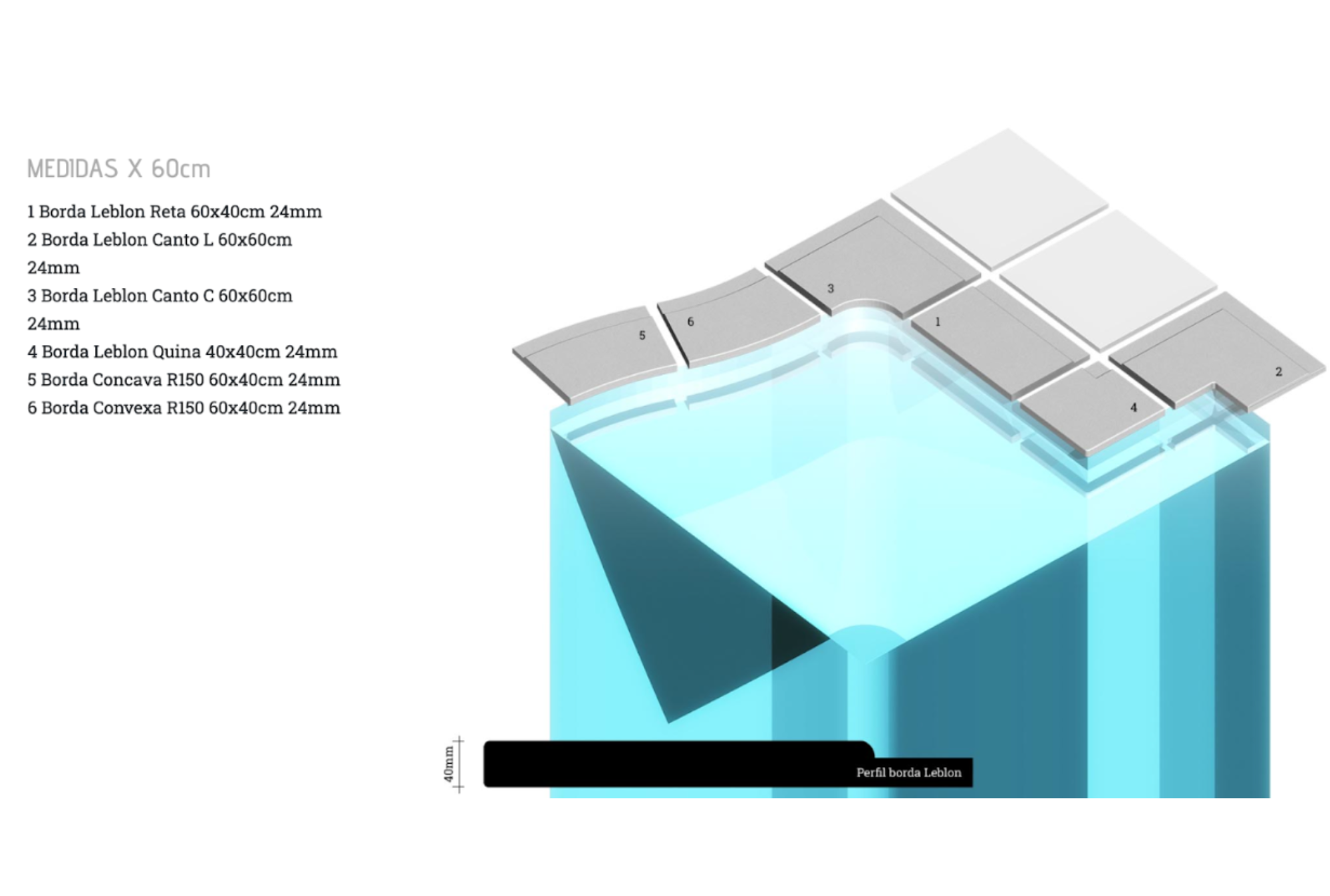 • 1 Borda Leblon Reta 60x40cm 24mm