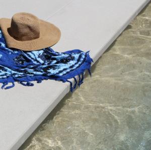 Contorno de Piscina, Bordas e Ralo Lineares: Pode ser usada em volta da área da piscina, que é ideal para uso descalço, criando um acabamento minimalista de baixa manutenção e antiderrapante.