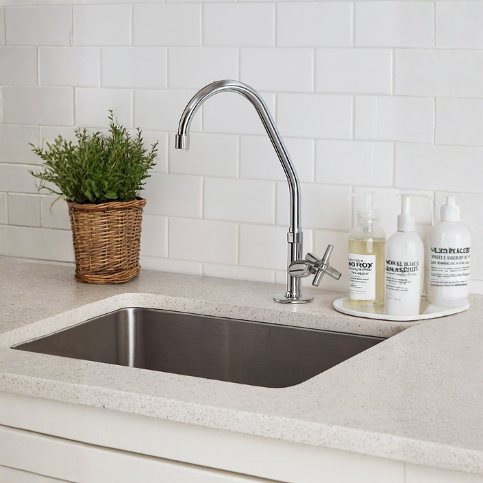 Torneira de Bancada Cozinha em Latao e Inox 201 Cromada
